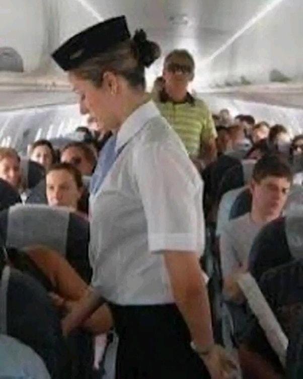 A white woman in her fifties sits in her seat on a crowded flight when she decided she didn’t want to.