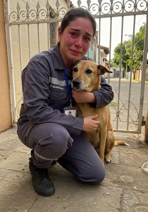 But today, when I got home from work and opened the door… there he was. Standing there, waiting. For the first time. He saw me and wagged his tail slowly. He didn’t even bark. He just stood there. I knelt down and cried. Not out of sadness, but because, after so much of his life being ignored, he chose to wait. I took a selfie with him right there on the doorstep. My tag on my chest, him clinging to me. The best welcome I’ve ever had.