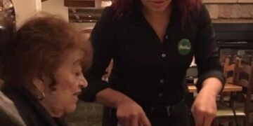 Last night, we went to Olive Garden for dinner. My mom, who is 79 years old, chose to sit at the corner of the table...