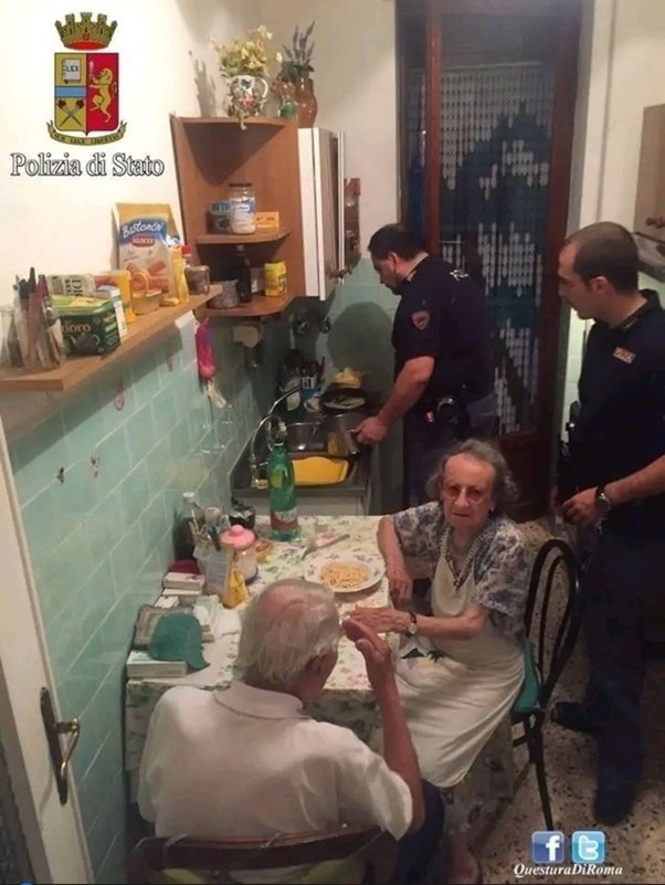 While waiting for an ambulance to check on the couple’s health, two of the officers decided to do something extraordinary. They asked to use the couple’s kitchen and cooked a simple dinner: spaghetti with butter and parmesan. Meanwhile, the other two officers sat with Jole and Michele, talking with them, listening to their stories, and offering warmth and companionship.