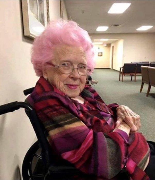 Today, I met a sweet and bubbly old lady in a wheelchair, and we became friends. She let me take her picture, but only if I told everyone she’s 93 years young! I told her that she and her pink hair made my day. She laughed and said, “Well, I refuse to be that little old white-haired lady!”