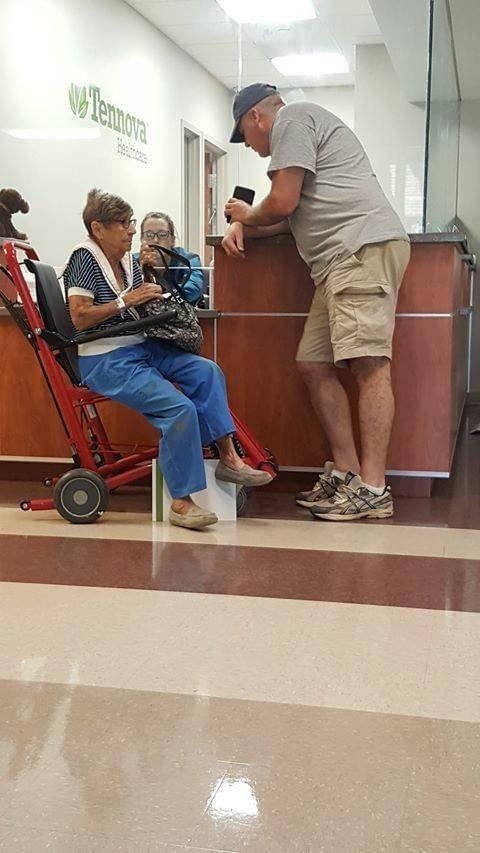 “My husband and I were in the ER and an elderly lady was wheeled out to leave. She told the receptionist she had no family or ride home.