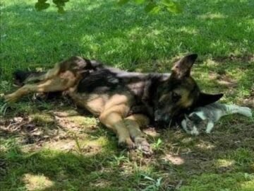 This older purebred German Shepherd was left with us 4 years ago. “We live out in the country, and sadly, we’ve had many animals dumped...
