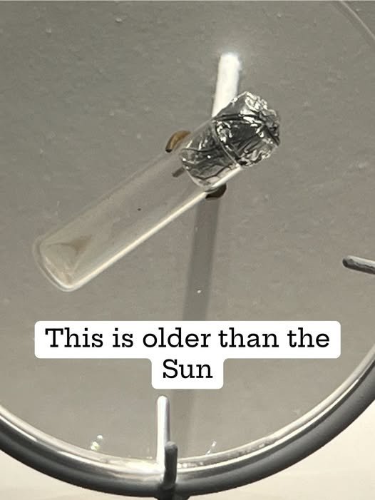See that tiny bit of white powder in the corner of the test tube? That’s actually stardust—what scientists call pre-solar grains. Their chemical makeup is totally different from anything else in our solar system. These grains are made of diamonds and other minerals, and they were created by stars that existed long before our Sun or planets were even formed.