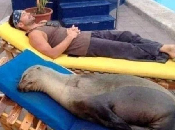 Every single day, after swimming and exploring the sea, Panchita returns to visit the people who saved her life. She climbs onto her favorite chair, relaxes beside her rescuers, and often takes a peaceful afternoon nap. After resting and enjoying their company, she slips back into the ocean again.