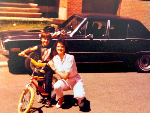 I explained the situation to her in a 7-year-old’s hysterical vocabulary and what happened next changed the way I viewed my mother in terms of strength, both mentally and physically. Understand, this was in the ’80s times were different then. My mother asked me to point from our window where they were and poof she was gone. Here’s a photo of her and me at 5 years old. My mom was 22 here. It’s not the same bike I had at 7, but you get the deal.