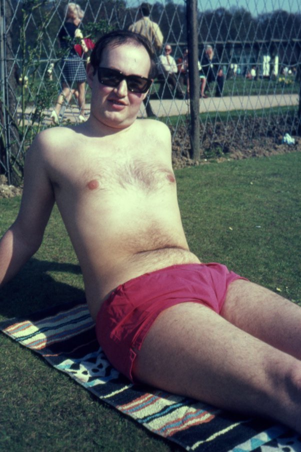 I was wearing the shorts you see in the photo at Grimsby Swimming Baths one day and was standing on the side of the pool talking to a friend. He was looking up at me and suddenly he said, “Pat, I can see up your shorts” This was embarrassing as if he could see then so could everyone else. There was no inner slip and he was having a clear view of my male attributes. Thereafter I always wore a red pair of briefs underneath when I wore those shorts.